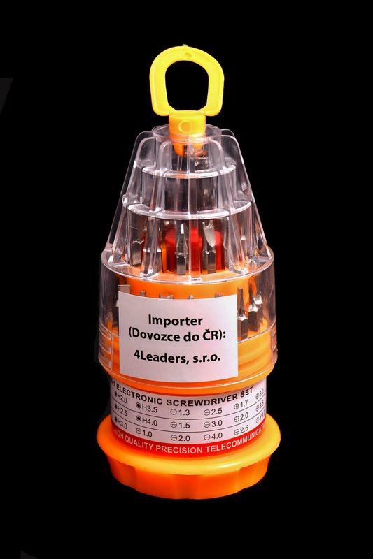 Šroubovák má gumovou rukojeť, nemusíte se tedy bát mozolů při jeho používání. K dispozici máte 30 kusů nástavců.